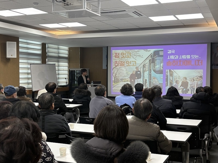 공단은 지난 2일 승하차 매니저를 포함한 어르신 40여 명과 소통하는 자리를 마련하고, 근무수칙 안내와 친절 교육을 진행했다. 아울러 완주군 마을버스에 도입된 초정밀 라이브 버스 정보 시스템 활용을 위한 실무교육도 실시했다.