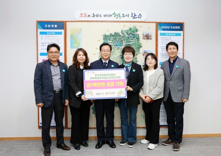 이날 행사에는 태치옥 완주군지회장을 비롯해 이설로 자문위원장, 장동익 삼례분회장 등 관계자들이 참석해 온정을 나눴다. 이번에 기부한 성금 100만 원은 관내 취약계층을 위한 복지 사업에 소중히 사용할 계획이다.