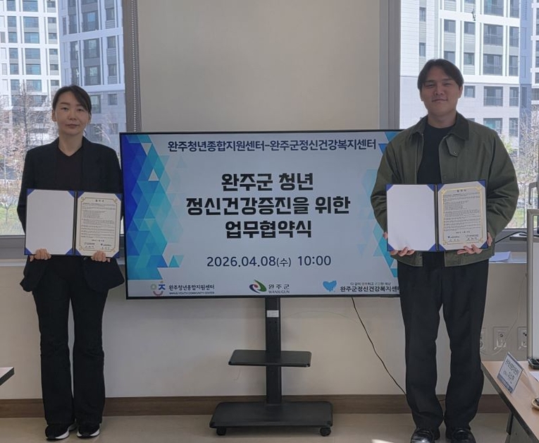 최형욱 완주청년종합지원센터장은 “이번 협약을 통해 청년들이 겪는 심리적 어려움을 조기에 발견하고 전문적인 지원으로 연결할 수 있는 기반이 마련됐다”며, “앞으로도 지역 내 다양한 기관과 협력해 청년들이 건강하고 안정적으로 성장할 수 있도록 적극 지원하겠다”고 말했다.